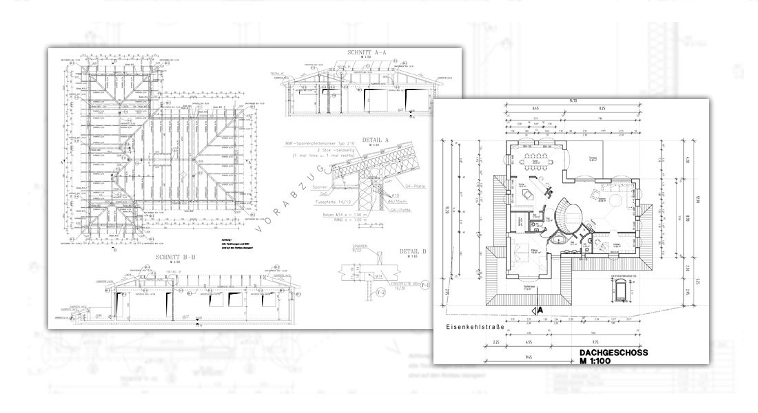 Projekt budowlany i wykonawczy konstrukcji budynku.